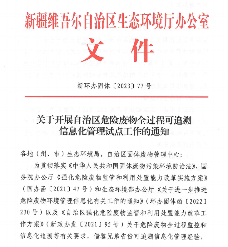 新疆维吾尔自治区固体废物环境管理信息系统